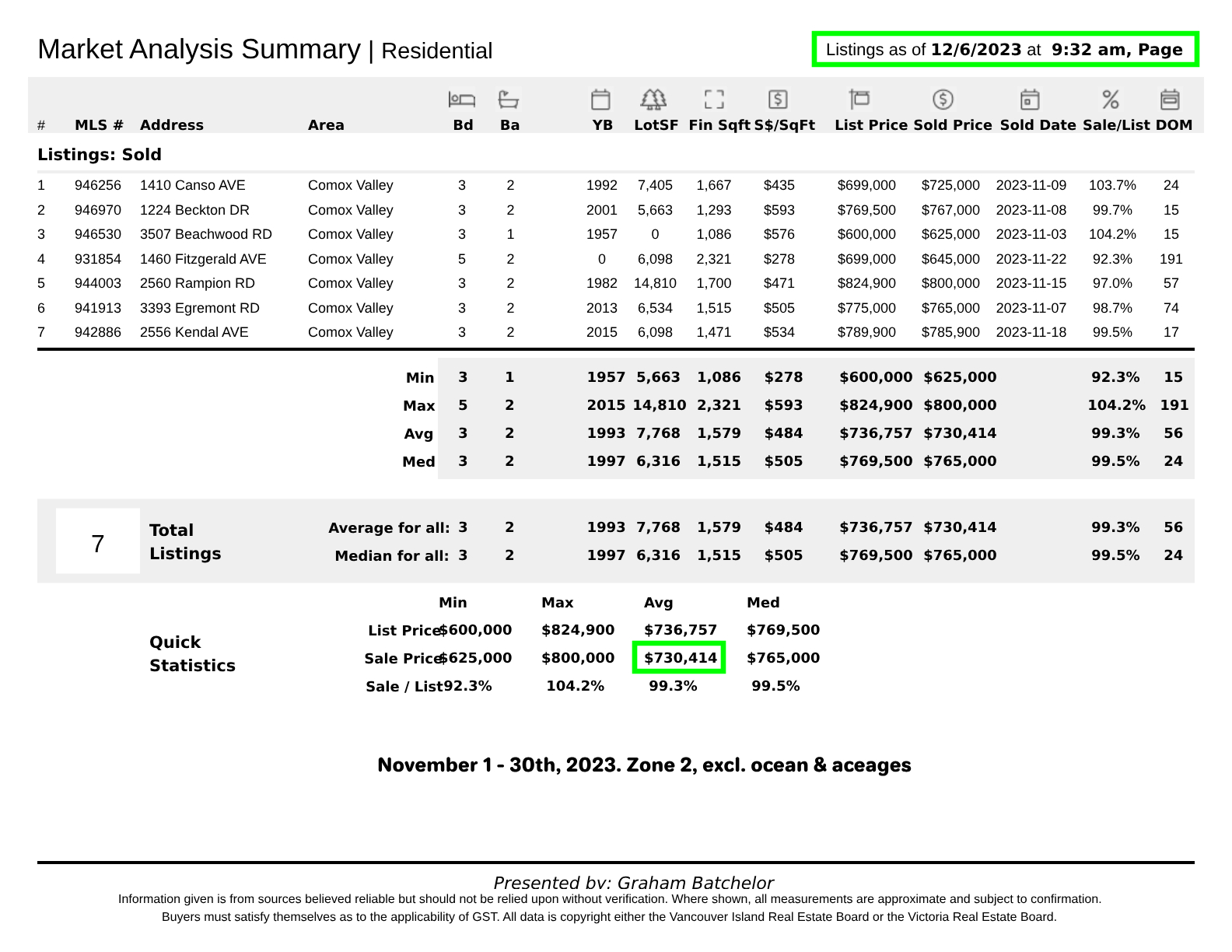 - Data used for Comox Valley December 2023 pricing